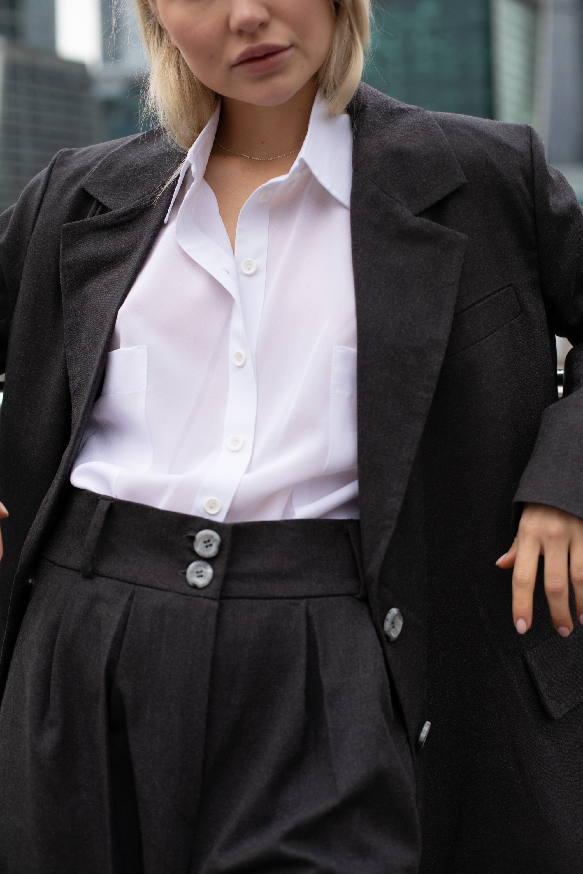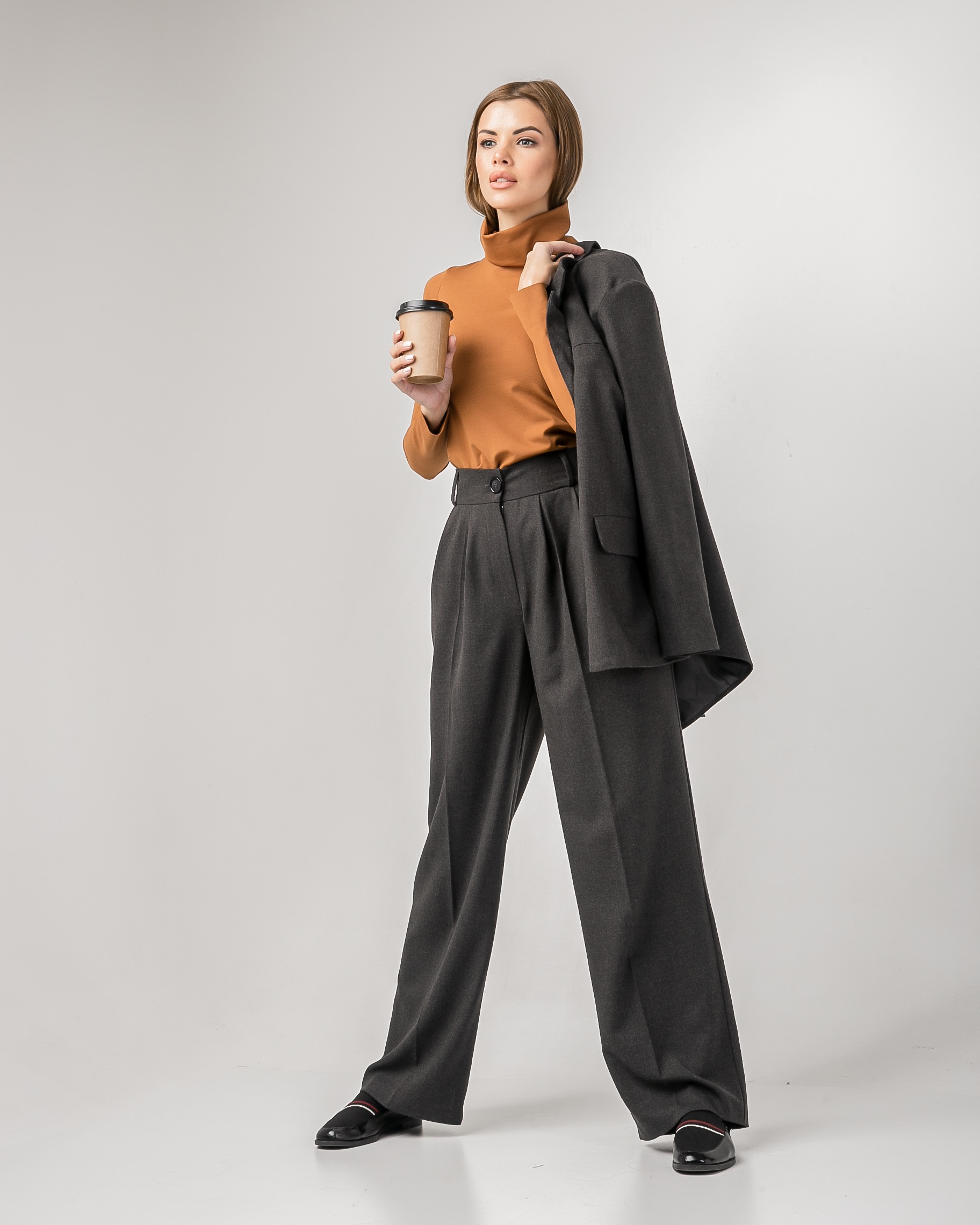 По-перше, зимовий брючний костюм багатофункціональний, його елементи можна носити окремо. Штани чудово гармоніюватимуть з будь-яким верхом: джемпер, футболка, светр, худі, водолазка. А піджак стане вдалим доповненням багатошарових образів і контрастом з будь-яким верхом.