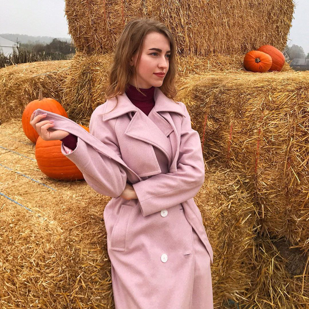 Напередодні Halloween @nastiapaskar поділилася атмосферним знімком. На ньому дівчина в нашому пальто-реглан зображена на тлі яскравого гарбуза. Пальто чудово вписалося в ці "пейзажі", і впевнені, що гріло того похмурого дня. Анастасії дуже личить це ніжно-рожевий колір, а широкий комір підкреслив довгу шию, створивши акцент на гольфі.